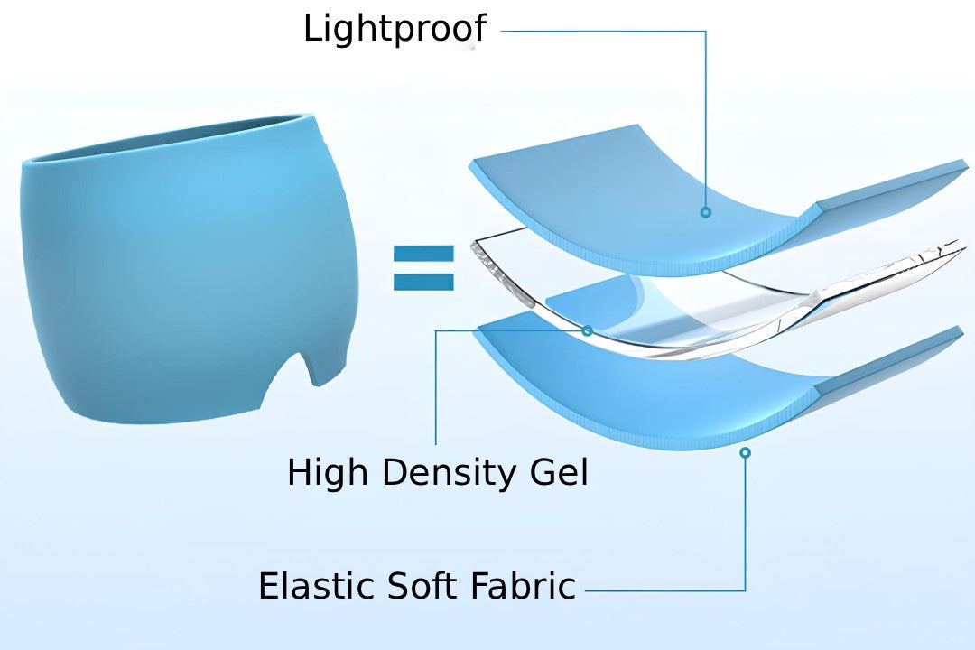 MigraCalm contains medical-grade gel and soft Lycra fabric that retain temperature for long periods.